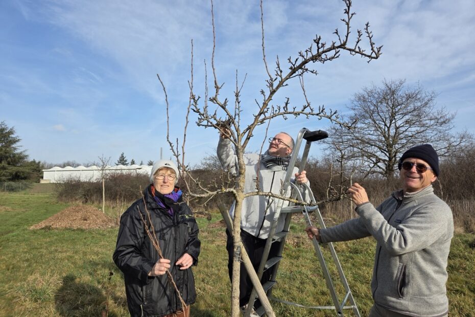 David Devidal des CROQUEURS pommes® des Vergers du Lyonnais nous a rejoint le mercredi 21 janvier pour prélever des greffons et visiter notre verger.
